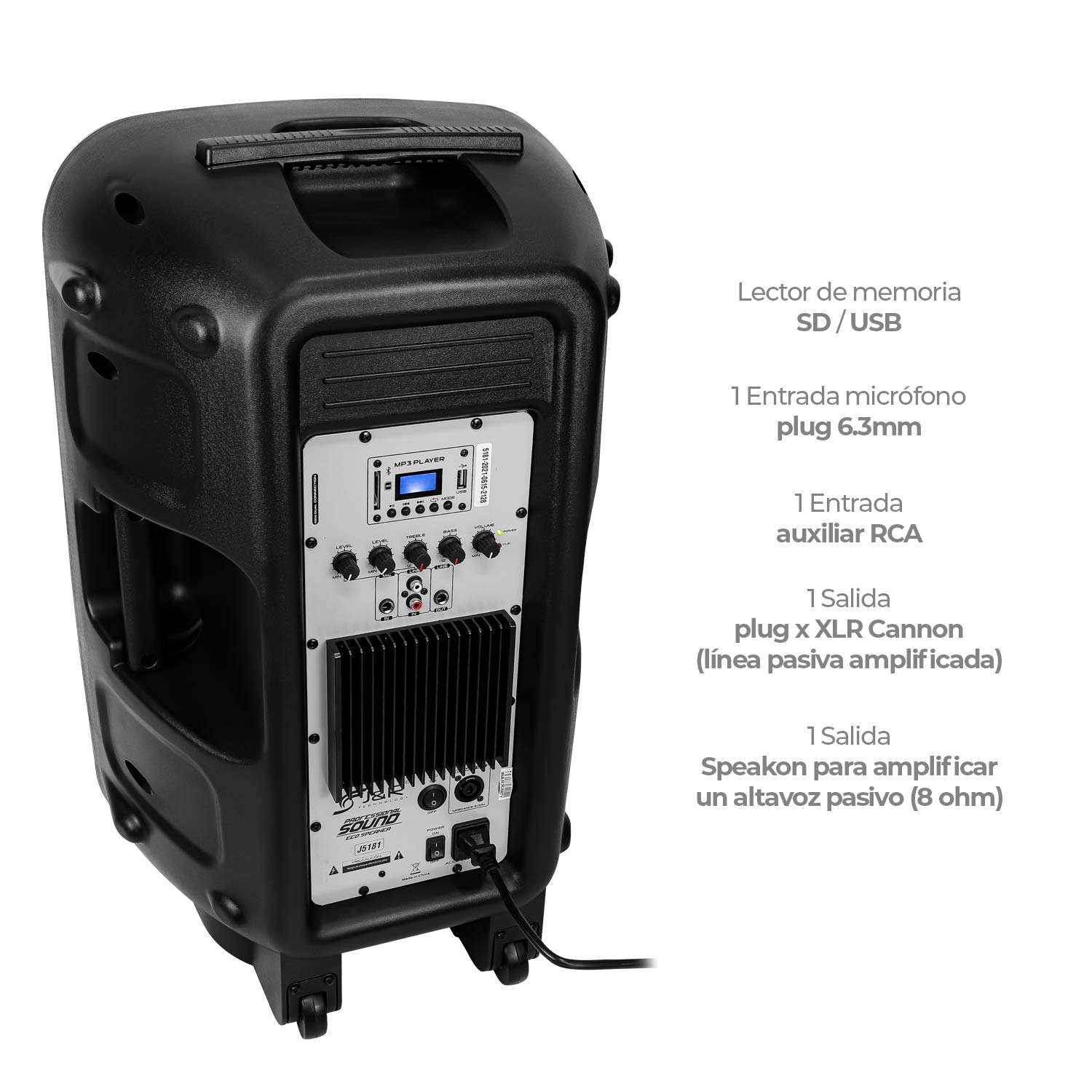 La J5181 / 15″ / Cabina Activa Directa es un tipo de altavoz profesional diseñado para ser una solución de sonido completa y fácil de usar, ideal para eventos en vivo, presentaciones, DJs y cualquier situación que requiera una amplificación de audio potente y clara.